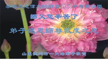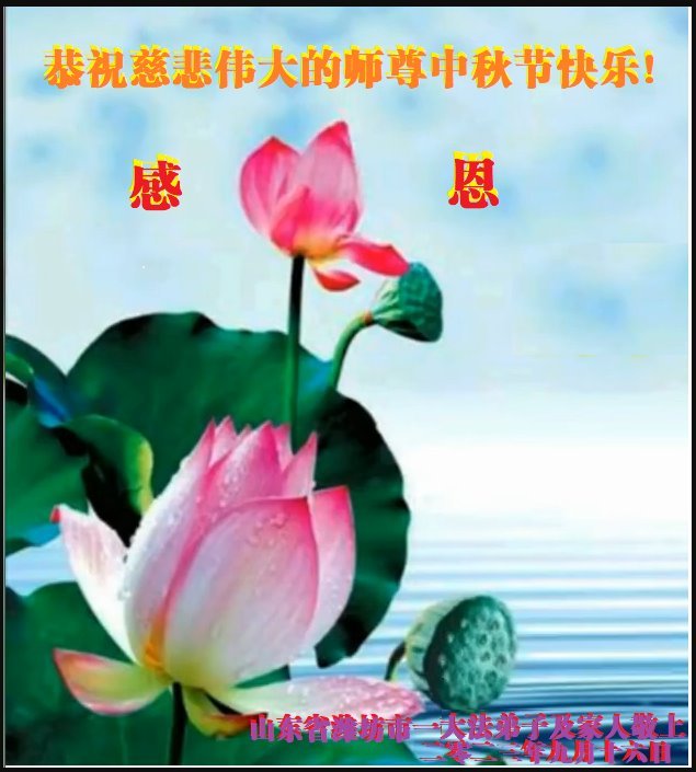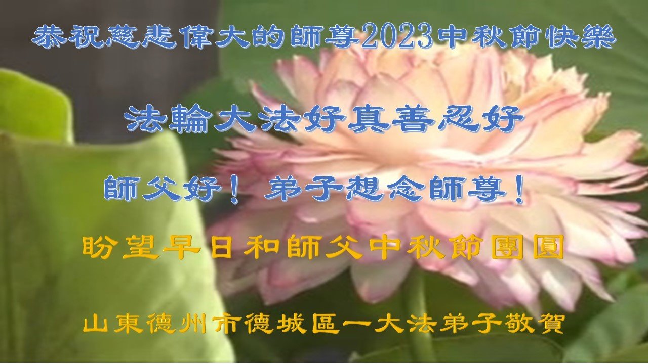 感谢伟大师尊的慈悲救度! 我们一定努力做好三件事,勇猛精進。 潍坊市一家庭学法小组大法弟子叩拜 二零二三年九月二十七日 山东省德州市德城区全体大法弟子恭祝慈悲伟大的师尊中秋节快乐!