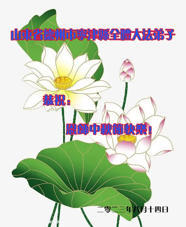 山东德州市德城区全体大法弟子敬贺 山东省潍坊市一大法弟子恭祝师尊中秋节快乐!