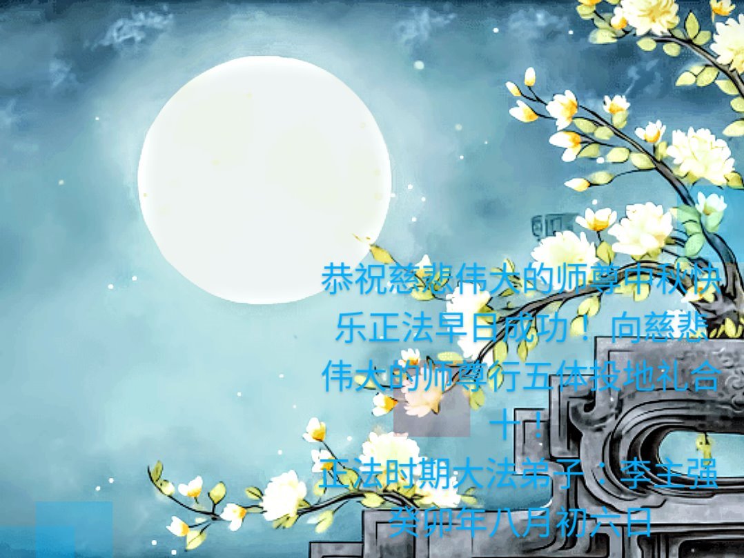 恭祝师父中秋节快乐!感恩师父慈悲救度!努力走好最后的路,不负师父慈悲苦度! 北漂大法弟子恭祝师尊中秋节快乐!