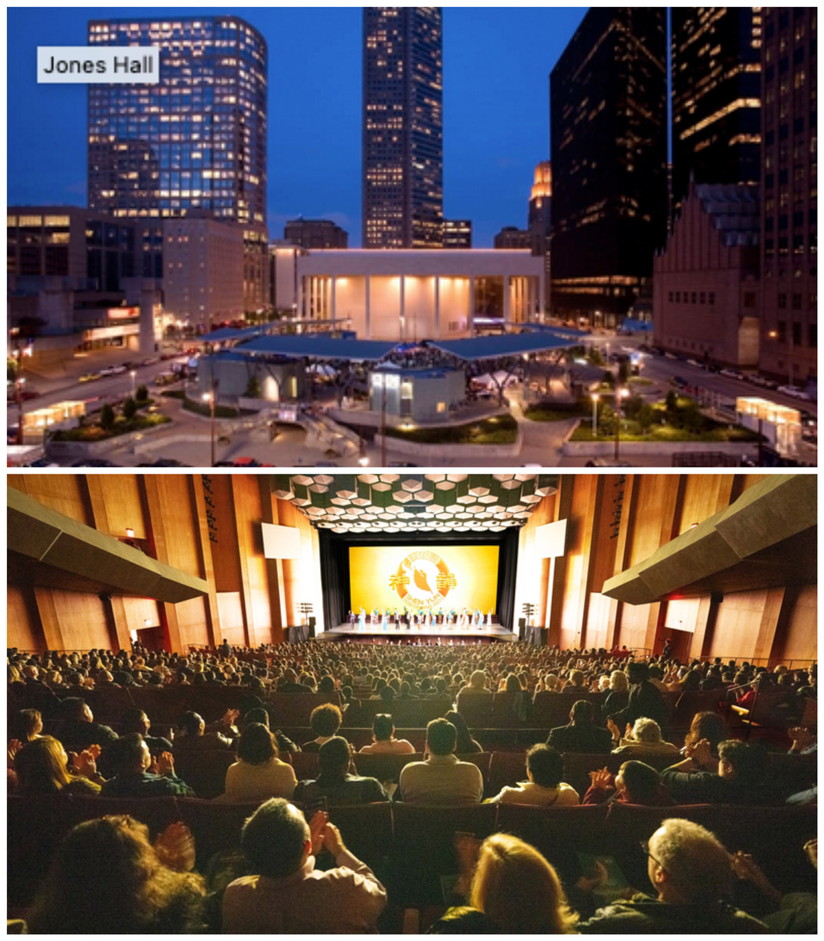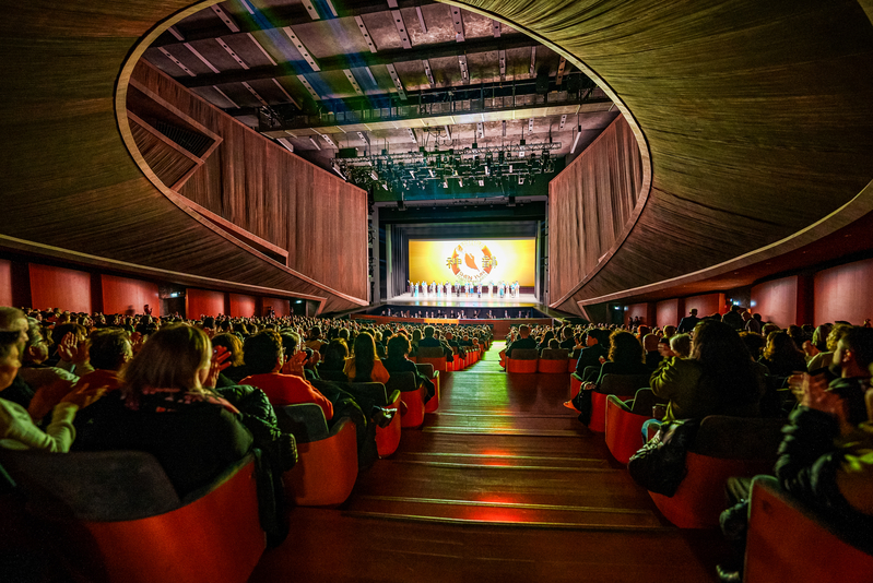 | 【明慧网二零二四年一月三日】(明慧记者英梓、李若云综合报道)二零二四年元旦之际,美国神韵艺术团八个团同步在亚洲日本、欧洲的英国伯明翰和意大利佛罗伦萨,还有美国休斯顿、达拉斯、圣荷西、波士顿、佛罗里达等城市上演全新的演出,各地剧院纷纷爆满。这台纯善、纯美的演出让千千万万现场主流观众看到了共产主义之前的中国,给他们带来了独一无二的艺术体验、希望与祝福。 各地现场观众们不仅对神韵艺术家们的纯善纯美,精湛的技艺,全身心的付出赞不绝口,更感谢神韵让他们看到了真实的中国。他们更体会到,演出能唤醒人的神性,让人感受到真诚、善良、宽容的美好。  图1:圣诞节过后,2023年12月26日至2024年元旦,神韵北美艺术团莅临美国德州最大城市——休斯顿的休斯顿琼斯演艺中心(Jones Hall for the Performing Arts)进行的七天10场演出场场爆满。上图:剧院外景;下图为12月31日下午场,演出现场大爆满的盛况。(大.纪.元;) |