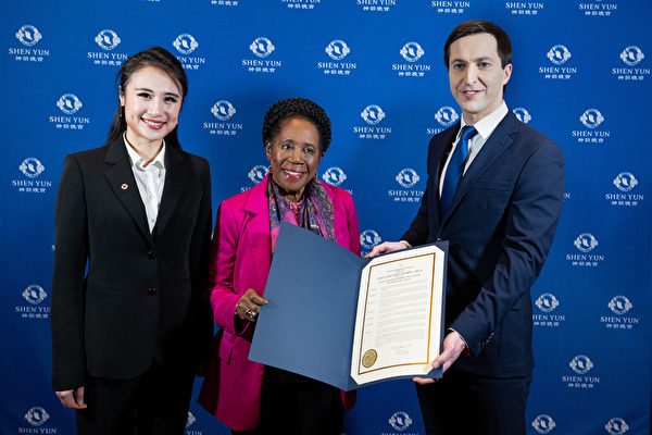 休斯顿连续十场爆满 州议员:神韵演出是如此地美丽壮观 休斯顿港是美国最繁忙的港口,也是世界第六大港口。今年,美国神韵北美艺术团在休斯顿琼斯演艺中心(Jones Hall for the Performing Arts)七天十场的演出场场爆满,有些场次不得不打开原本不开放的座位来满足观众的需求。 德克萨斯州众议院于十二月五日通过了第48号决议案,赞扬神韵艺术团成立18年来对社会所做的卓越贡献。为了表达对神韵演出的认可,德州众议院特意为神韵颁发官方褒奖认证,并宣布二零二三年十二月二十六日为“神韵日”。  图2:12月30日,德州第18国会选区联邦众议员希拉·杰克逊·李(Sheila Jackson Lee)亲临在休斯顿琼斯演艺中心剧院,向神韵艺术团颁发国会褒奖证书,并祝贺休斯顿的“神韵艺术周”。 |
