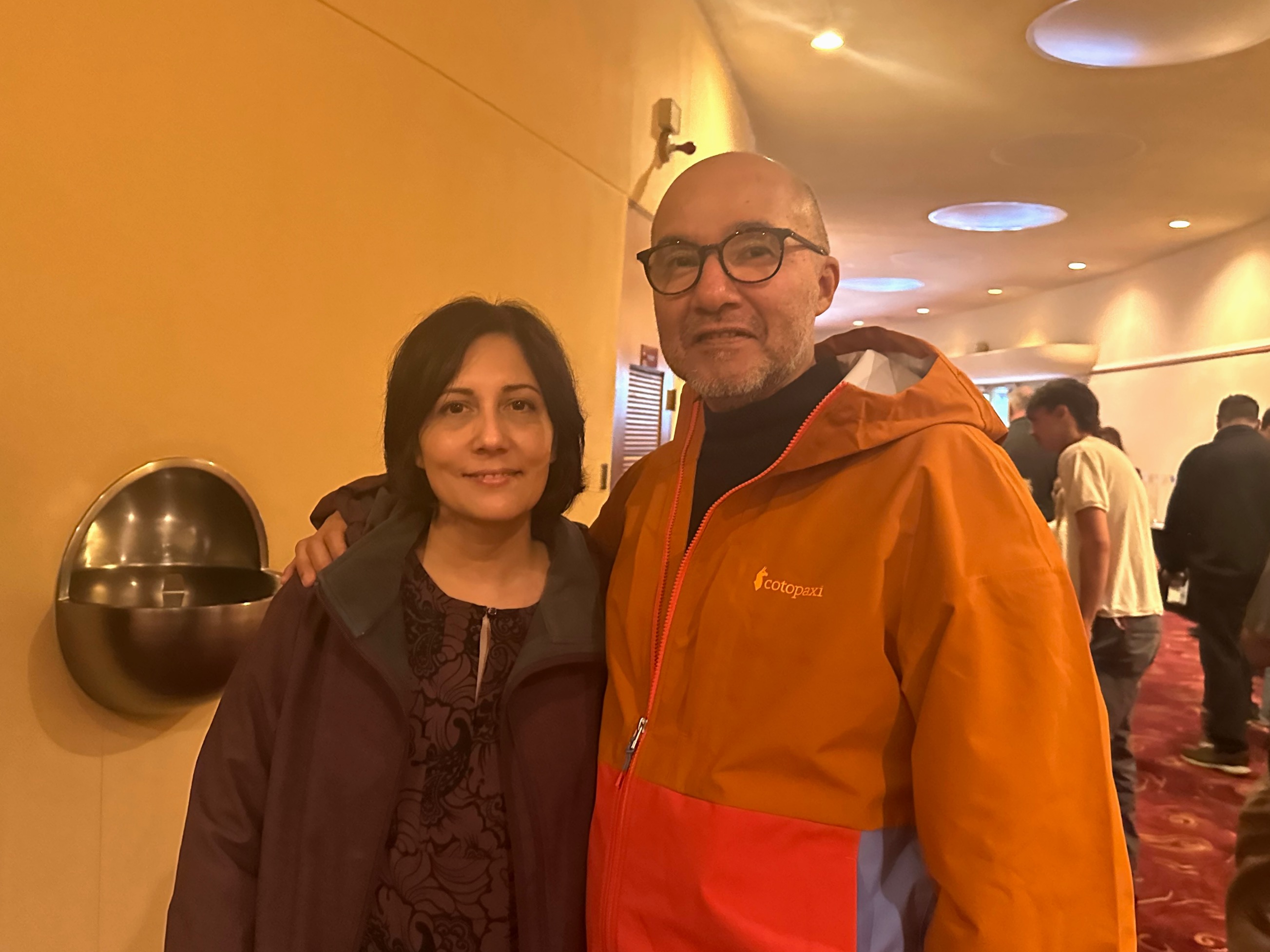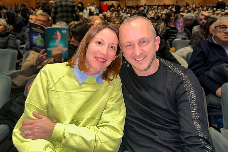 这是多纳托·皮萨内利(Donato Pisanelli)第一次观赏了神韵。“我其实并不常常去剧院,但我的朋友了解我的喜好,极力推荐我来看神韵,果然第一次观看我就被深深吸引住了。” “节目丰富多彩,每一个都很精彩,所有的故事都非常有意思。”他赞神韵演出的方方面面:“例如服饰非常精美,舞台设计也非常漂亮。” 他说:“乐团是现场演奏,是同步的,一切都是同步进行的,太壮观了。我觉得这(舞蹈和乐团)真的震撼到我了,令人难忘。”  图6:2023年12月30日晚,意大利一家百年足球俱乐部的体育总监詹卢卡·皮奥拉(Gianluca Piola)与太太维维安·贝尔蒂尼(Vivian Bertini)一起观看了神韵在佛罗伦萨五月音乐节剧场的第四场演出。(大.纪.元;) |