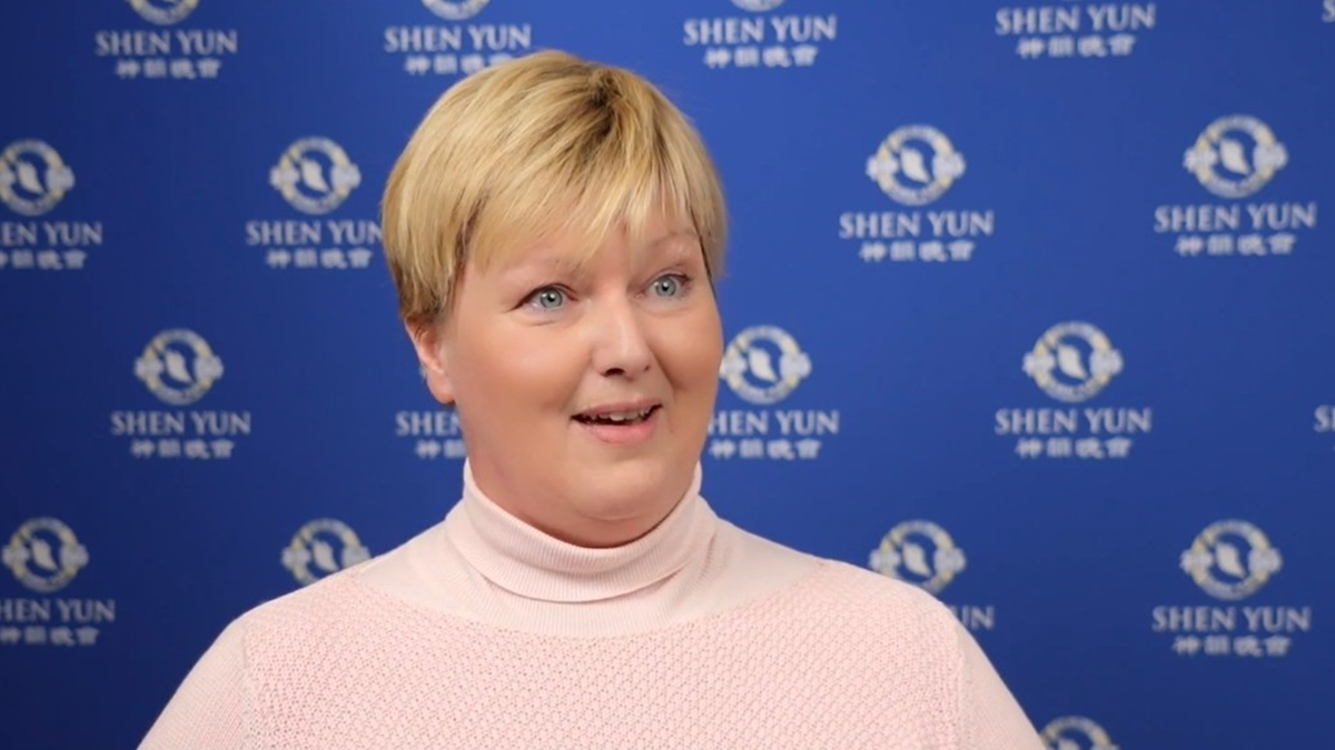 亨特勋爵赞神韵:“这是一场听觉飨宴。顶级制作,舞蹈、音乐、独唱表演都卓尔不群,以及各种视觉元素与舞蹈演员的结合,绝对非同凡响。” 亨特勋爵说:“我很荣幸能来这里观看神韵,也非常开心能看到这么美妙的演出,尤其是节目还传递了相当重要的信息。” 英国资深舞蹈评审赞神韵的演员和编舞 二零二三年十二月三十日下午,英国舞蹈教师协会国际考官安吉拉·普瑞尔-睿伯德(Angela Pryer-Raybould),观看了美国神韵新纪元艺术团在英国伯明翰ICC剧院的第二场演出。她感谢神韵艺术家带来的美好体验。  图13:安吉拉·普瑞尔-睿伯德(Angela Pryer-Raybould)说:“演出极其动人、真实、诚挚。”(新!唐!人:) |