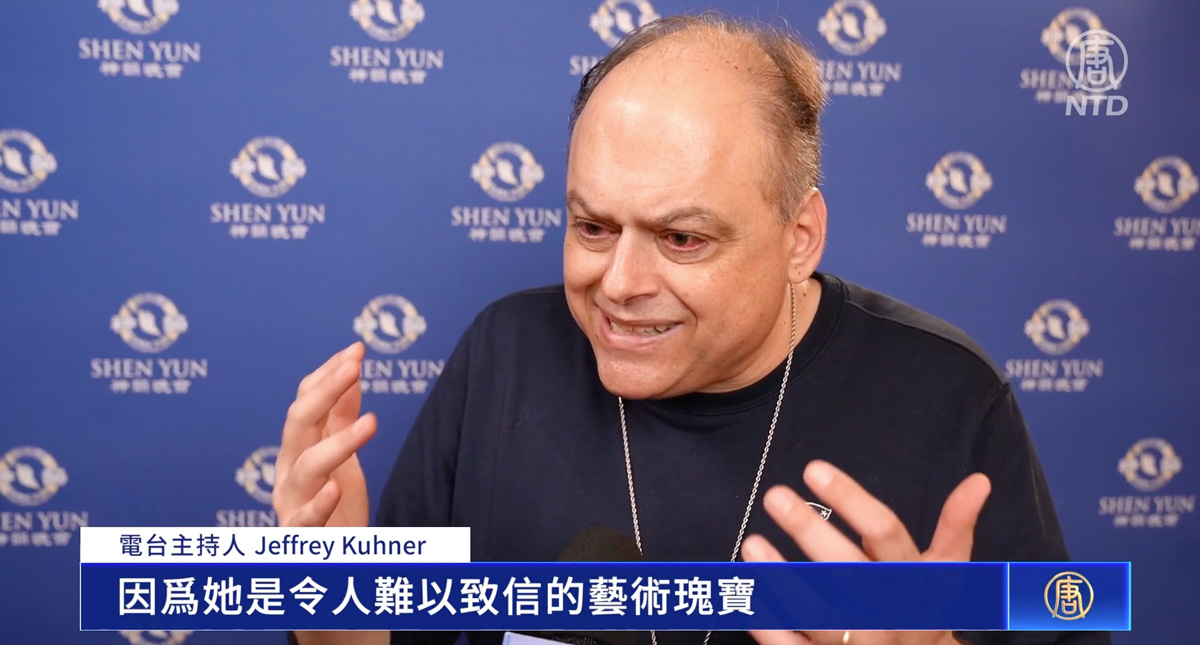 二零二三年十二月二十八日至三十一日,美国神韵巡回艺术团在波士顿博赫王安剧院上演了五场演出。美国电台知名保守派节目“The Kuhner Report”主持人杰弗里·库纳(Jeffrey Kuhner)带着全家再度观看了三十日的神韵演出后赞叹,神韵是令人难以置信的艺术瑰宝,展现了真正的中国。  图15:美国电台知名保守派节目“The Kuhner Report”主持人杰弗里·库纳(Jeffrey Kuhner)在接受采访。(新!唐!人:电视截图) |