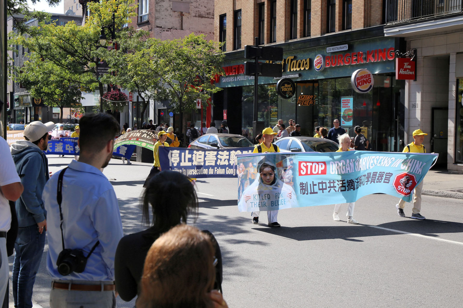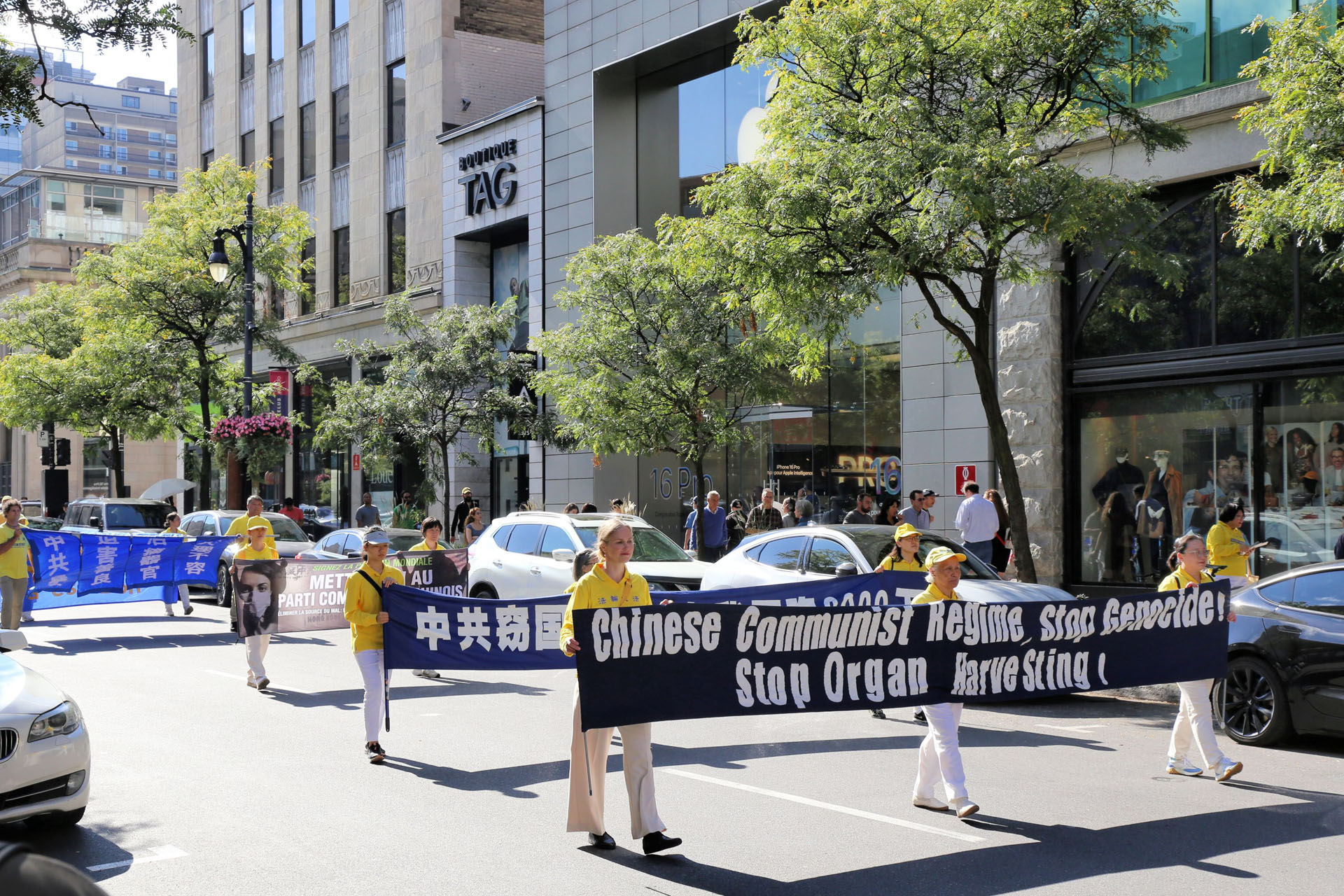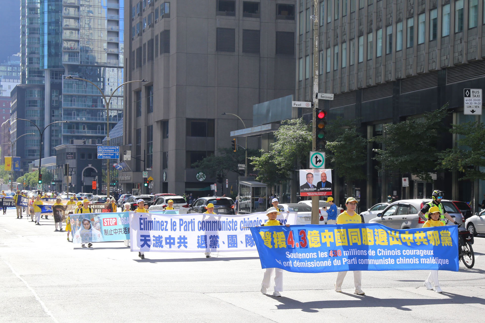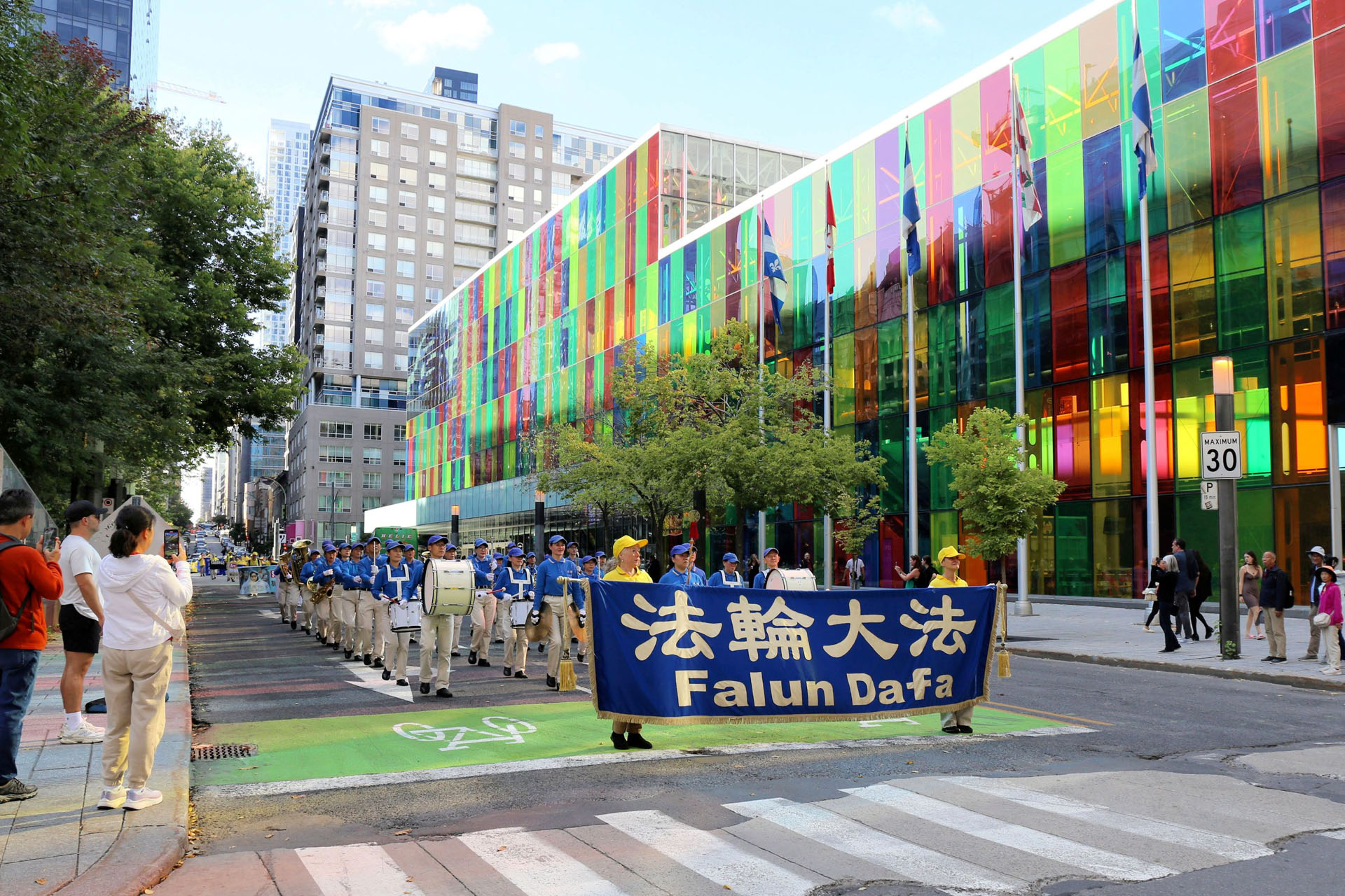 | 【明慧网二零二四年十月一日】二零二四年九月二十八日,加拿大魁北克部分法轮功学员在蒙特利尔举行游行集会,声援逾4.3亿中国人退出中共的党、团、队组织,同时呼吁各界共同制止中共迫害。游行队伍传递的信息,引起沿途民众的共鸣。有的人很高兴,要和中国人一起庆祝;他表示,这种和平的方式,是抗议暴政的榜样,祝愿“这样的努力继续下去”。 中国民众在全球.退:党!服务中心网站上登记,声明退出中国共产党、共青团、少先队等一切中共组织,也叫做“三:退.”,迄今已有超过四亿三千六百五十多万人办理了三:退.。 法轮功学员表示,举办活动的目的,是让人们看到“三:退.”大潮势不可挡,并期盼更多中国人认清中共,勇于“三:退.”,远离险恶,让自己有光明的未来。 当天游行队伍从蒙特利尔市区凯博广场(Cabot Square)出发,途经繁华商业区圣-凯瑟琳大街(Rue Sainte-Catherine)、知名景点老城区(Old Montreal),抵达终点兵器广场(Place d’Armes),随后举行了集会和集体炼功活动。  图1~7:二零二四年九月二十八日,加拿大魁北克部分法轮功学员在蒙特利尔举行游行集会,声援逾四亿三千万中国人退出中共的党、团、队组织,为自己选择光明的未来。 |