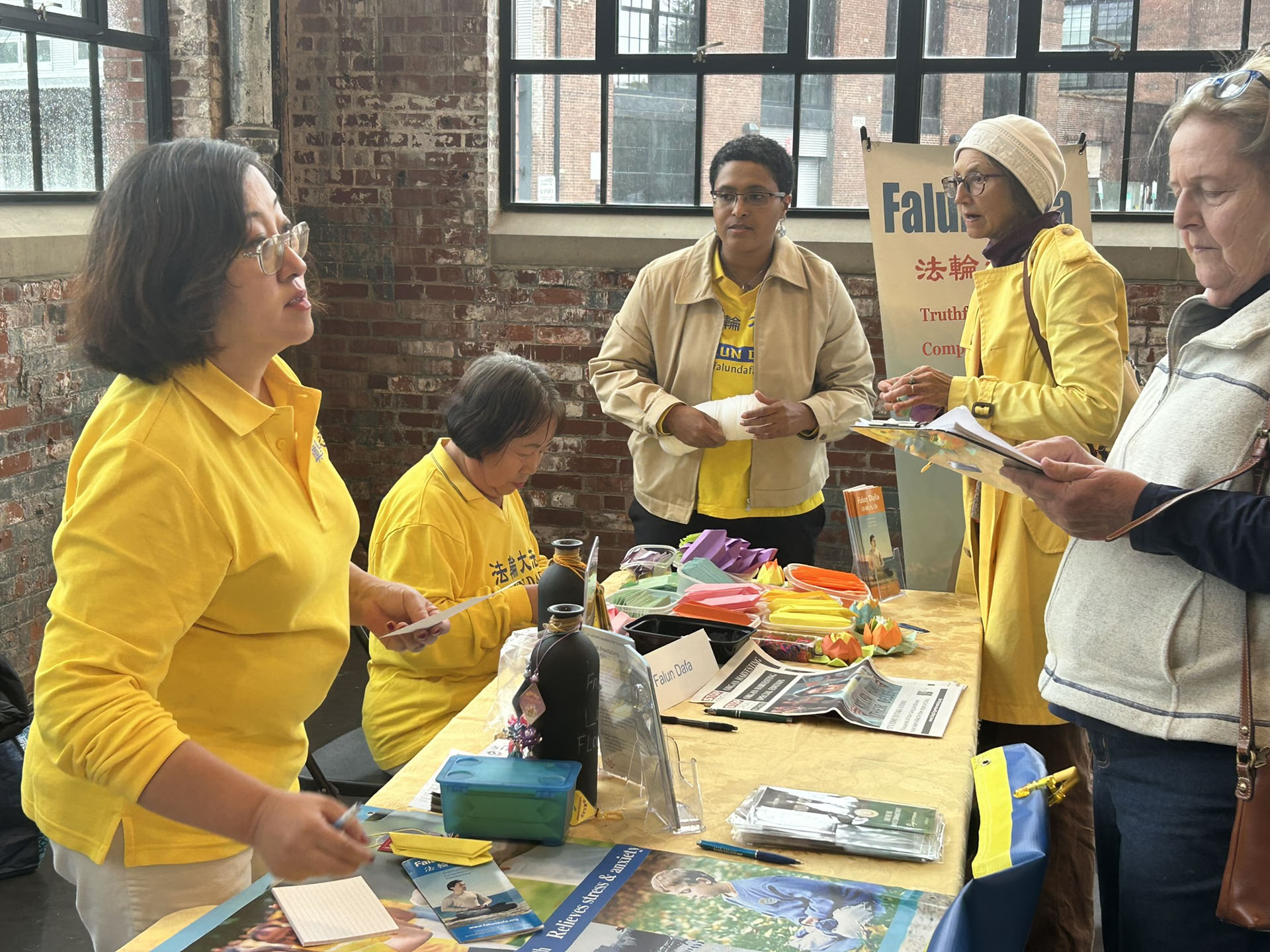 功法展示结束后,许多跟着学炼的人纷纷来到大法展位,表达了想进一步了解法轮大法的兴趣。有的人打听在哪里有炼功点,每周是什么时间,也想去学功。也有人在展位上就跟学员们认认真真地学起了法轮功功法。 有位练瑜伽的女士在大法展位前停留了很久,她很想学法轮功。学员告诉她可以预约好时间和地点,学员会按时过去免费教功,如果她有朋友想学也可以一起学,她听后非常高兴。 民众签名支持法轮功保护法案 前来展位的很多人听到法轮功学员目前仍在遭受中共的迫害,现场正在征集签名,请求罗德岛州联邦参议员支持通过“法轮功保护法案”,很多人立刻就签名支持。 一位老先生来到大法展位前,学员向他介绍法轮大法,讲了大法的美好,通过修炼,不仅能使自己精神上能得到提升,而且身体康健,学员还讲了中共活摘法轮功学员器官罪行,以及民众的签字对制止迫害,挽救生命很重要,这位先生听后不仅自己在征签表上签了名,离开展位后还转告他太太,把他太太带到展位了解真相并签了名。 一位孩子妈妈带着女儿来到展位,对学员说:“你还记得我吗,去年我们来过展位,今年我们又来了。”学员感到很高兴,自己一点点的付出给前来的家庭留下了深刻的印象,事隔一年后这对母女又回到大法展位前,这位妈妈在支持法轮功保护法案签名表上签了自己的名字。 |
