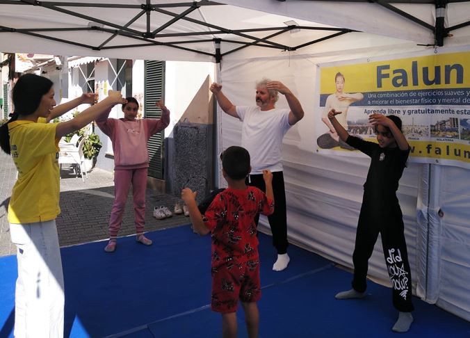 埃丝特(Esther)女士被法轮功音乐和学员炼功展现的平静所吸引,她希望能在忙碌生活和许多承诺中拥有法轮功的这种平静与安宁。她表示,自己长期以来一直在寻找缓解压力的方法,因此很想学炼法轮大法功法。她带走了大法传单,表示会深入了解法轮佛法和其“真、善、忍”的原则。 来自该岛首府帕尔马的弗朗西斯科(Francisco)和胡安妮(Juani)夫妇被音乐所吸引来到法轮功展位,在看到学员们演示的法轮功功法后表示:他们非常喜欢这个来自东方的修炼功法,他们还表示会把传单和小莲花寄给在印度的女儿。弗朗西斯科说:“真、善、忍原则必须成为学校的必修课,因为现今社会亟须这些价值观。”胡安妮表示她将会去帕尔马的炼功点学习法轮功。 一位年轻女孩在听到学员介绍法轮大法和讲述自己的修炼体会后,知道了法轮大法是以“真、善、忍”为原则,在面对冲突与逆境要向内找时,她表示非常认同,她说自己正好现在她也在尝试内观自己的心境。她表示会去法轮大法的网站,以了解这个功法涵盖的更深层含义。她被学员打坐时所感受到的平静所深深吸引,她说一定会去公园学功。 |