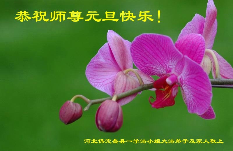 恭祝慈悲伟大的师尊新年快乐! 河北省保定市蠡县城内一学法小组大法弟子携家人敬上 河北省保定市阜平县一学法小组三位大法弟子恭祝师尊新年快乐!