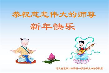 谢谢师父慈悲看护弟子们一路走到今天。我们在新的一年里一定学好法,实修自己,互相提醒,整体提高,做好三件事多救众生。跪拜师恩! 河北省张家口市涿鹿县一大法弟子恭祝师父新年快乐!
