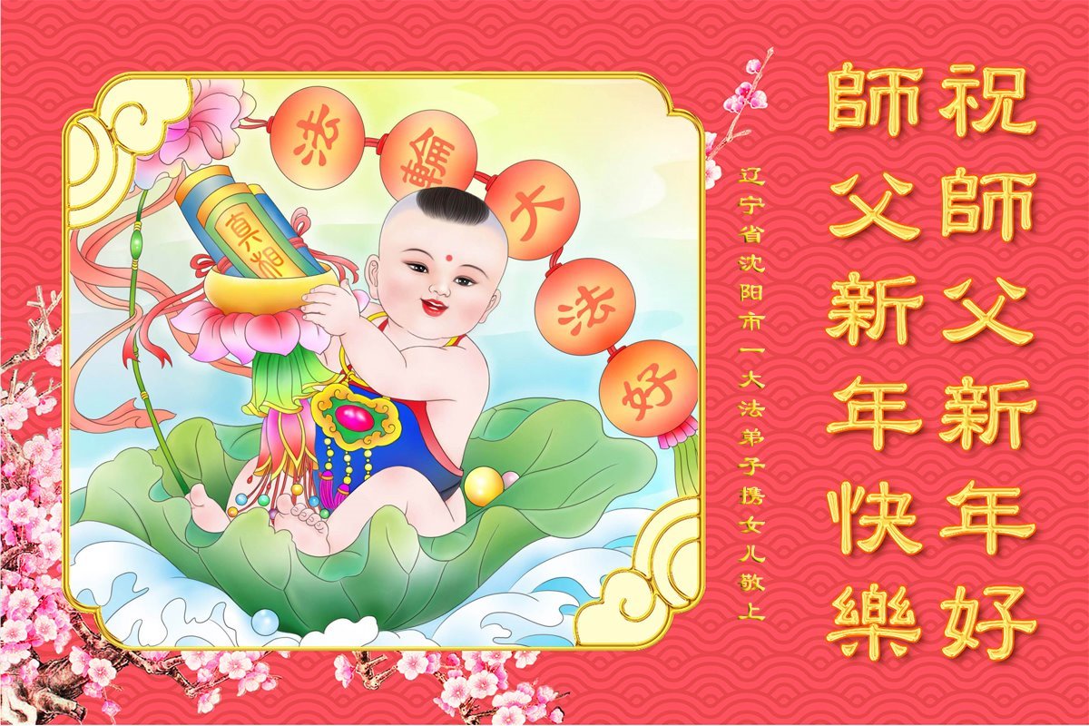 恭祝师尊新年快乐! 叩谢师尊慈悲苦度! 辽宁省沈阳市一大法弟子全家四口人敬上 二零二四年十二月十七日 辽宁省沈阳市一大法弟子携女儿恭祝师尊新年快乐!