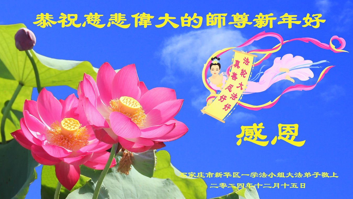 恭祝慈悲伟大的师尊新年快乐! 河北石家庄大法弟子敬上 二零二四年十二月十五日 河北省石家庄市一家大法弟子敬贺师尊新年好!
