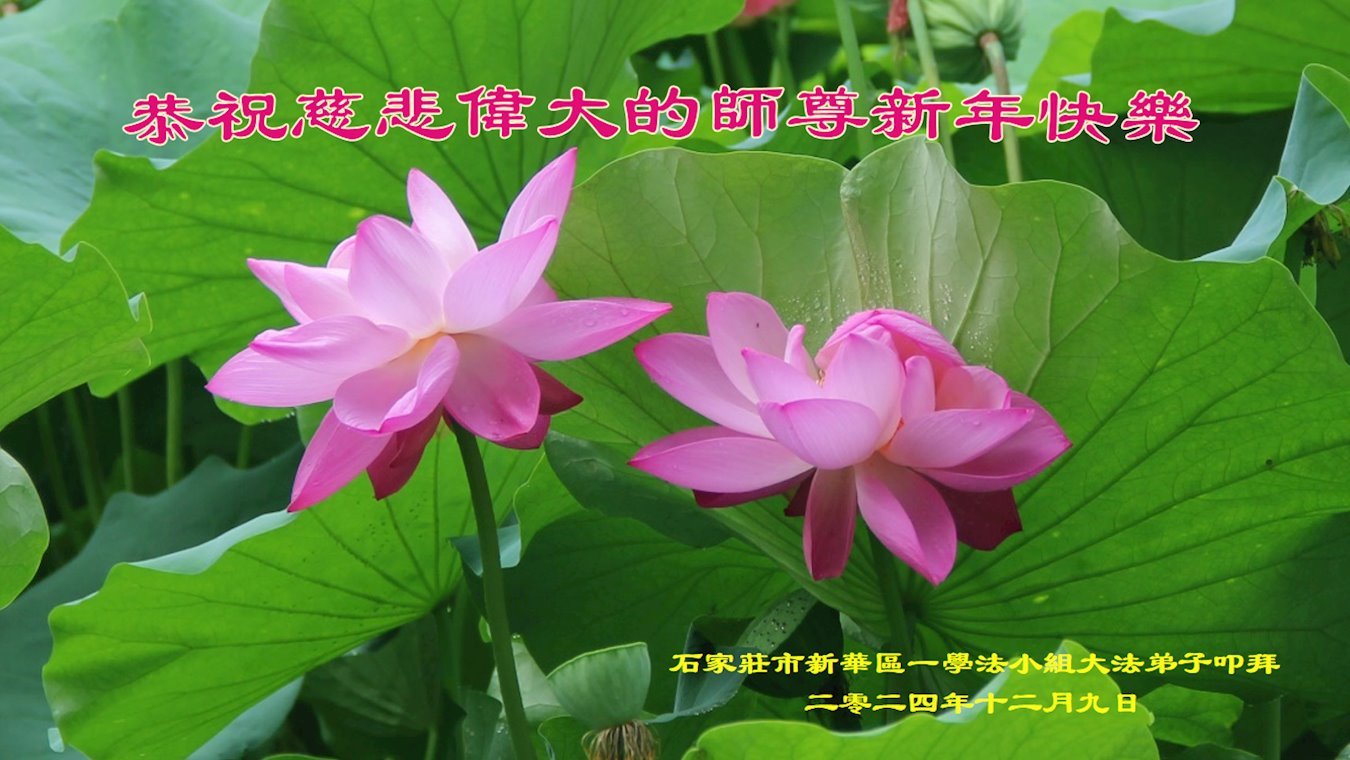 【明慧网二零二四年十二月二十七日】 河北省石家庄市新华区两人学法小组大法弟子恭祝慈悲伟大的师尊新年快乐!