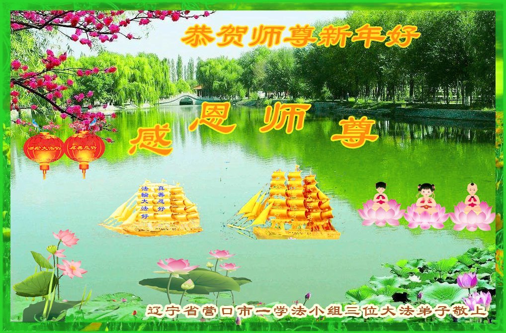 恭祝师尊新年好! 辽宁省营口市一学法小组三位大法弟子敬上 辽宁省抚顺市一大法弟子恭祝慈悲伟大的师尊新年好!