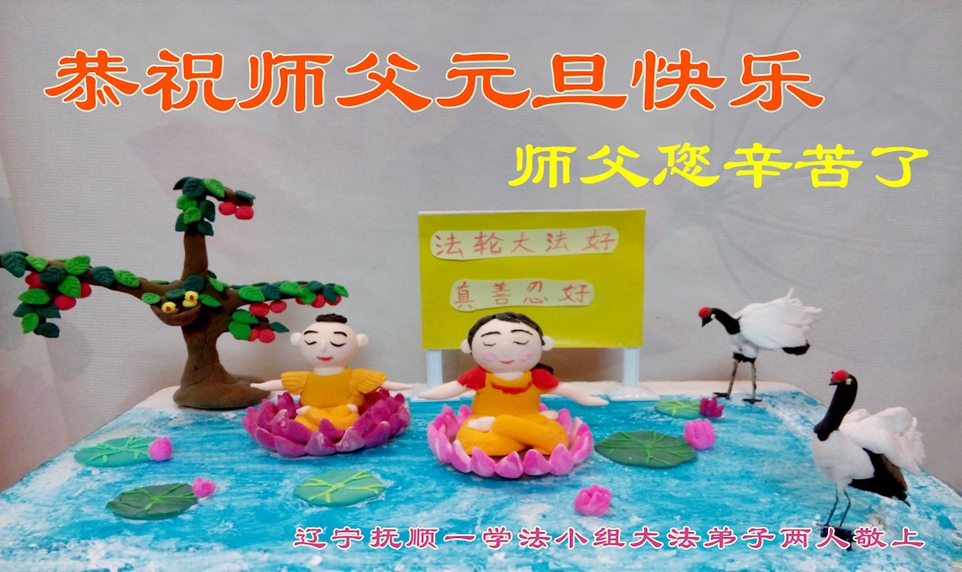 辽宁省抚顺两人学法小组大法弟子恭祝师父元旦快乐!