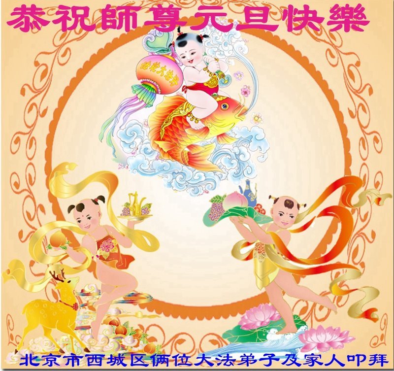 北京市西城区两位大法弟子及家人恭祝慈悲伟大的师尊元旦快乐!