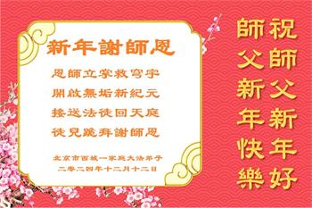 【明慧网二零二四年十二月二十七日】 北京市顺义区二名大法弟子恭祝师尊新年快乐!