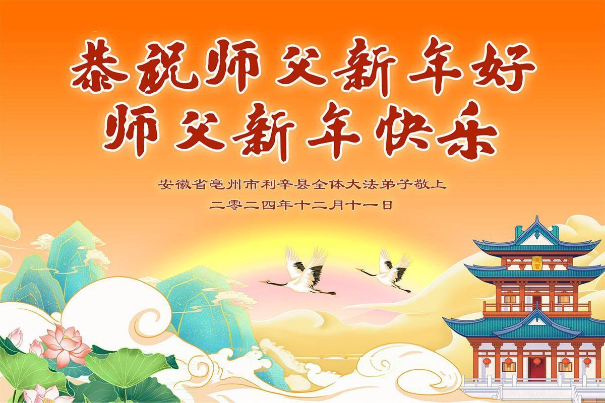 师尊您好!恭祝慈悲伟大的师尊新年快乐!并深深表达弟子们对师尊的无限敬意和无尽的感恩! 安徽黄山市大法弟子敬上 二零二四年十二月十五日 安徽省亳州市利辛县全体大法弟子恭祝慈悲伟大的师尊新年好!