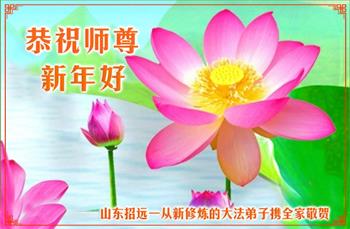 山东省烟台市招远市一从新修炼的大法弟子携全家恭祝师尊新年快乐!