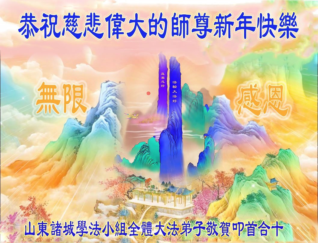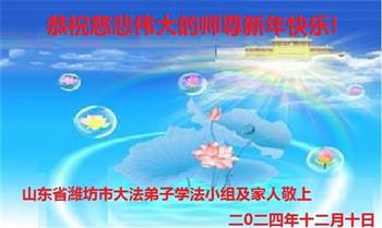 山东潍坊一学法小组大法弟子恭祝慈悲伟大的师尊新年快乐!