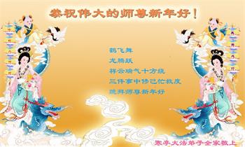 时间飞快,转眼又是一年。在新的一年里,弟子会听师父的话,做好三件事,遇事向内找。在仅有的时间里,勇猛精進。叩拜师尊一路保护!祝慈悲伟大的师父新年快乐! 山东省潍坊市诸城市一大法弟子恭祝师父新年快乐!