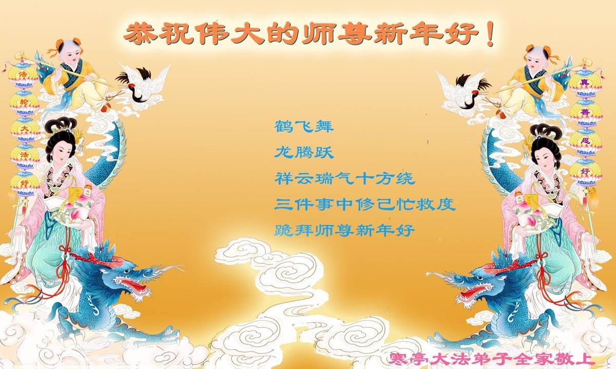山东省潍坊市寒亭区大法弟子全家恭祝师父新年好!