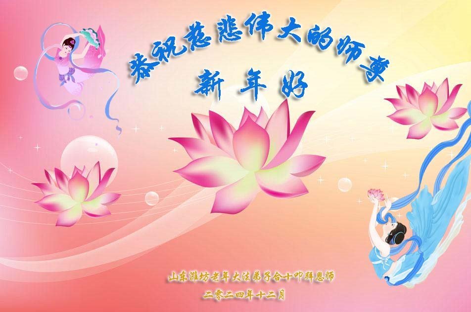 【明慧网二零二四年十二月二十七日】 山东潍坊老年大法弟子恭祝慈悲伟大的师尊新年快乐!