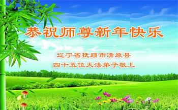 恭祝慈悲伟大的师尊元旦快乐! 《梧桐影·元旦好》 读宝书,师恩浩。 坚忍善言真法徒, 身心净化苍生保。 辽宁省抚顺市清原县一学法小组大法弟子敬上 辽宁省抚顺市清原县四十五位大法弟子恭祝师尊新年快乐!