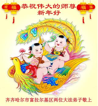 黑龙江省齐齐哈尔市两位大法弟子恭祝慈悲伟大的师尊新年好!