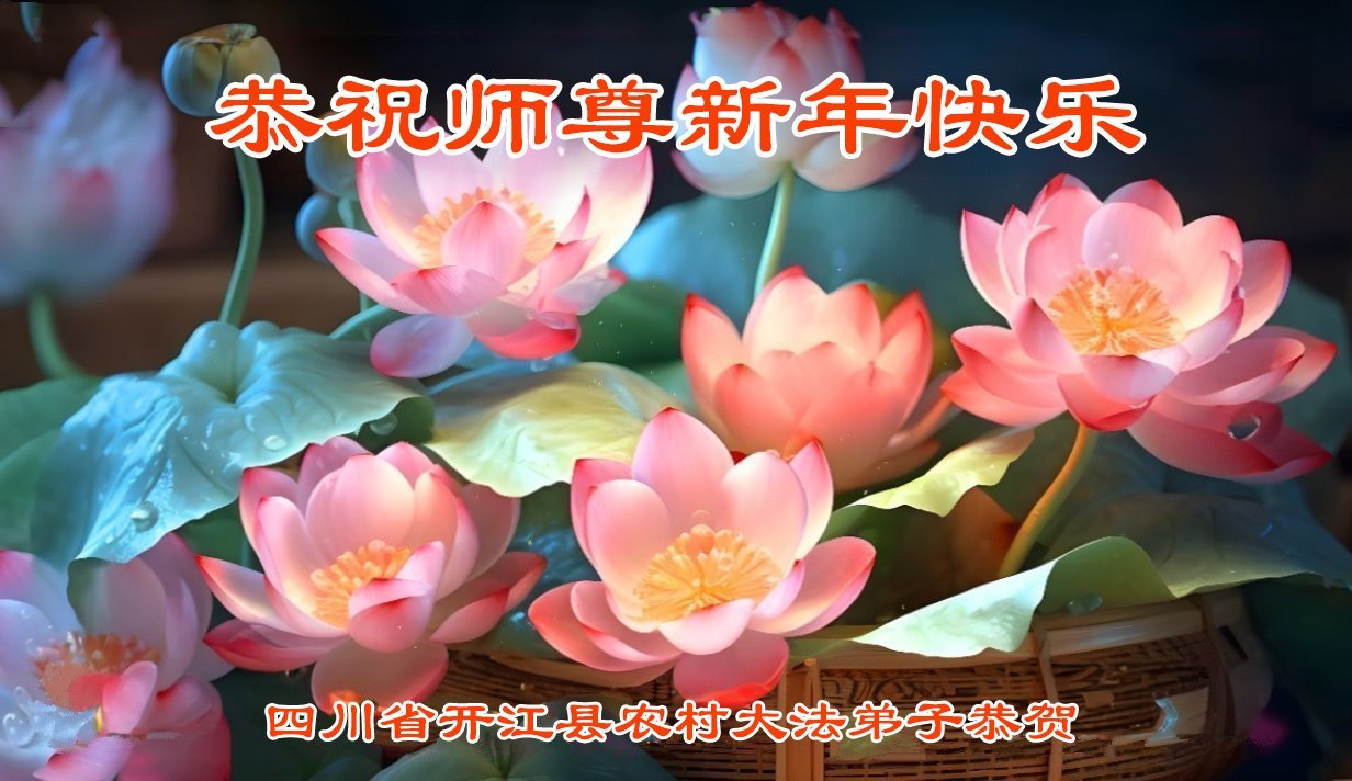 恭祝慈悲伟大的师尊新年好! 辽宁省锦州市西郊一乡村大法弟子敬上 二零二四年十二月十一日 四川省达州市开江县农村女大法弟子恭祝师父新年快乐!
