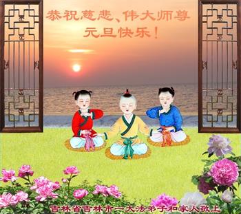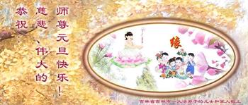 恭祝慈悲伟大的师尊新年快乐! 心声 提笔祝师新年快乐! 满怀慈悲救人多! 师尊方能真快乐! 吉林省吉林市一大法弟子敬上 吉林省吉林市全体大法弟子恭祝师尊新年好!