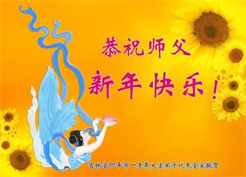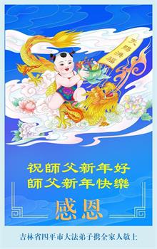 恭祝师父新年快乐! 吉林省四平市一老年大法弟子和全家敬上 吉林省四平市一老年大法弟子代表全家恭祝慈悲伟大的师尊新年快乐!