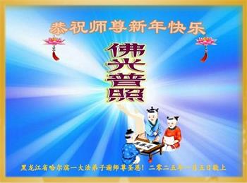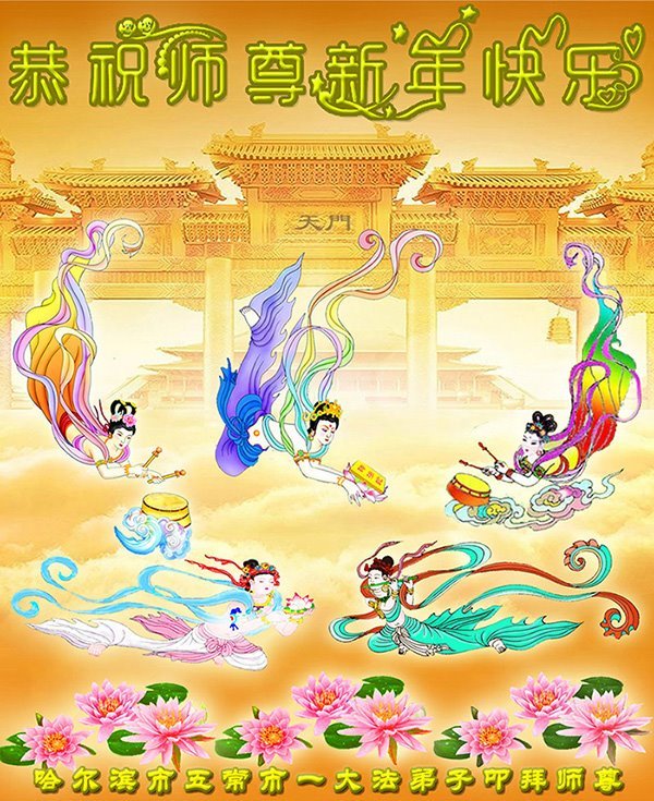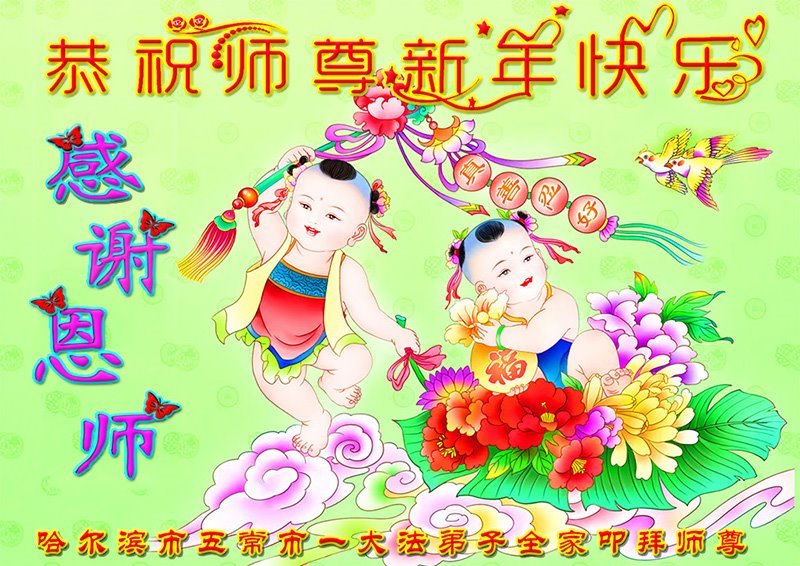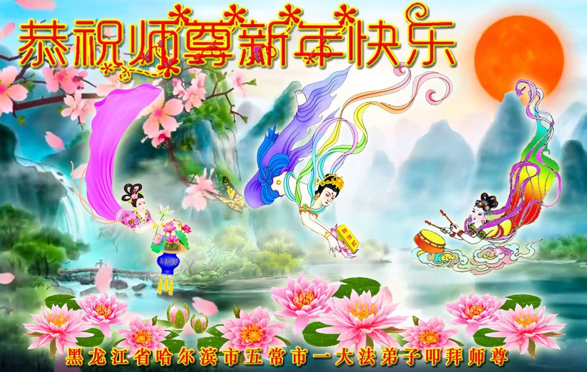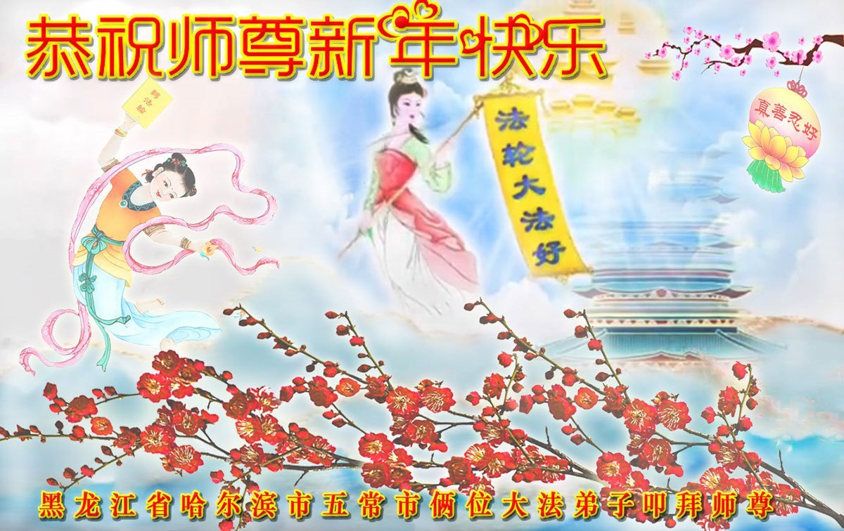 弟子一定精進!不负师恩! 黑龙江省哈尔滨双城区一家大法弟子恭祝师尊新年快乐!