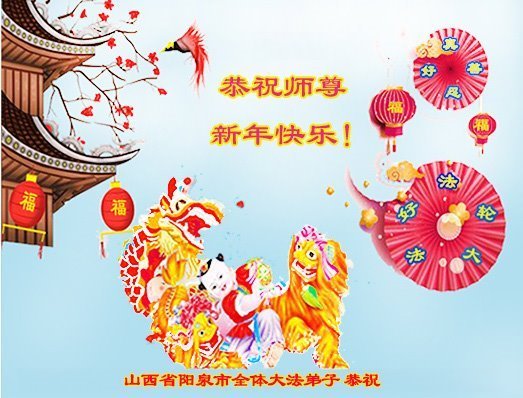 恭祝师尊新年快乐! 山西省阳泉市全体大法弟子敬上 山西省阳泉市全体大法弟子恭祝师尊新年快乐!