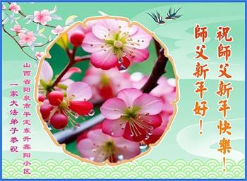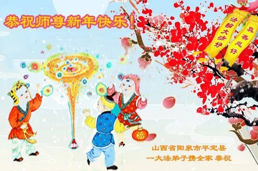 恭祝师尊新年快乐! 山西省阳泉市全体大法弟子敬上 山西省阳泉市平定县一大法弟子携全家恭祝师尊新年快乐!