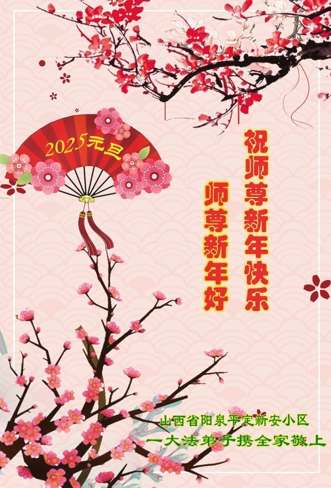 【明慧网二零二四年十二月二十七日】 山西省阳泉市平定县东升鑫阳小区大法弟子恭祝师尊新年快乐!
