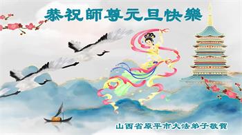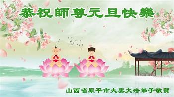 恭祝师尊新年快乐! 山西省阳泉市平定县东升鑫阳小区大法弟子敬上 山西省忻州市原平市夫妻大法弟子恭祝师尊元旦快乐!