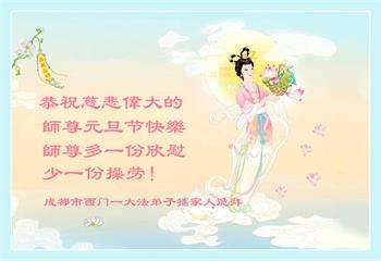四川省成都大法弟子恭祝师尊元旦快乐!