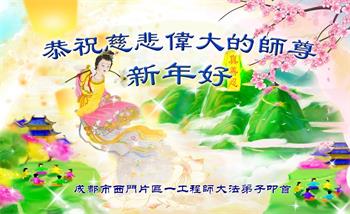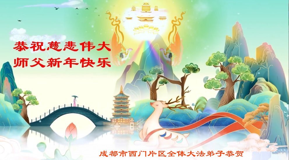 恭祝师尊新年快乐!感恩创世主! 四川省成都市西门片区一学法小组大法弟子敬上 四川省成都市西门片区一工程师大法弟子恭祝慈悲伟大的师尊新年好!
