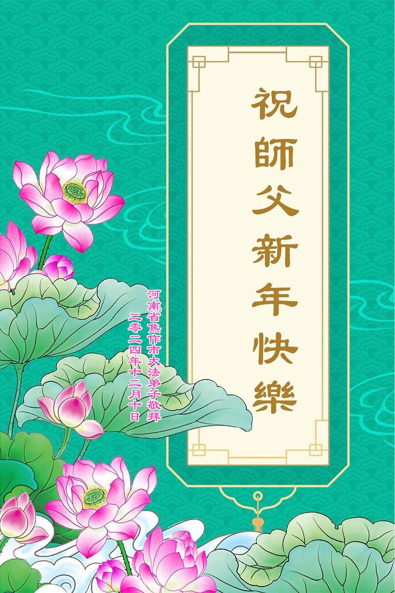 恭祝师尊新年快乐! 宇宙正法、救度众生,师父辛苦了!弟子只有好好学法,做好三件事,跟上正法進程,做好我们该做的,跟师尊回家。 河南省新乡市辉县市西部地区全体大法弟子敬上 二零二四年十二月十日 河南省焦作市大法弟子恭祝伟大的师尊新年快乐!