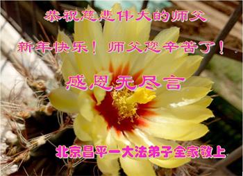 恭祝师尊新年快乐! 谢谢慈悲伟大的师尊时时对弟子的点化、加持、和看护,弟子唯有精進再精進! 北京朝阳一大法弟子敬上 北京顺义大法弟子一家恭祝师尊元旦快乐!
