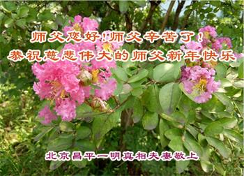 恭祝师尊新年快乐! 感恩师尊救度之恩! 河南郑州在北京一大法弟子敬上 北京昌平一大法弟子的姐妹恭祝慈悲伟大的师父新年快乐!