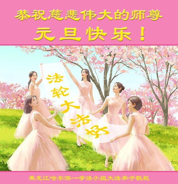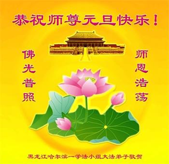 恭祝师尊元旦快乐! 黑龙江省哈尔滨一学法小组大法弟子敬上 黑龙江省哈尔滨一学法小组大法弟子恭祝师尊元旦快乐!