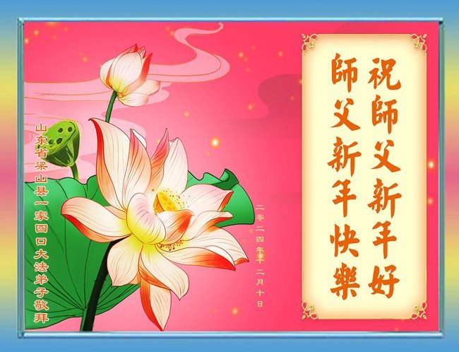 恭祝师父新年快乐! 山东省济宁市梁山一家四口大法弟子敬上 山东省济宁市梁山一大法弟子恭祝师父新年快乐!