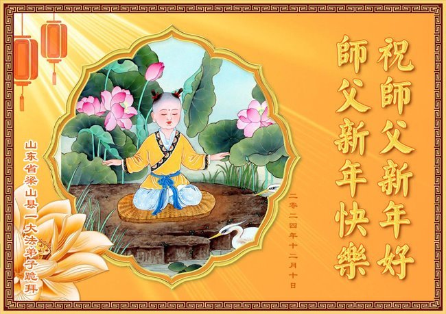 恭祝师父新年快乐! 山东滨州市滨城区一学法小组大法弟子敬上 二零二四年十二月十一日 山东省烟台地区莱州市一大法弟子恭祝师尊新年快乐!