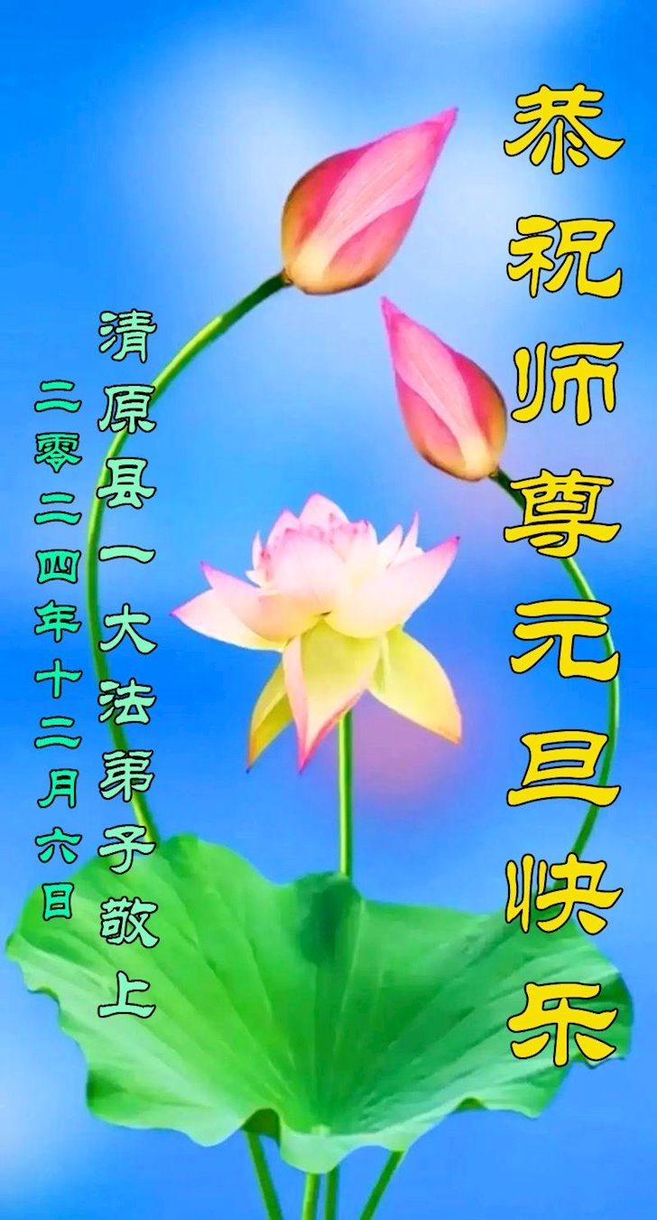 恭祝师尊新年快乐! 辽宁省抚顺市一父女大法弟子敬上 二零二四年十二月十二日 辽宁省抚顺市清原县一大法弟子恭祝师尊元旦快乐!
