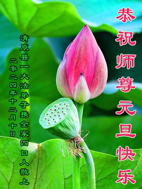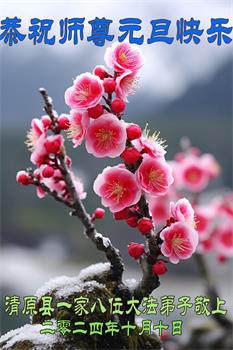 【明慧网二零二四年十二月二十七日】 辽宁省抚顺市清原县一大法弟子携全家四口人恭祝师尊元旦快乐!
