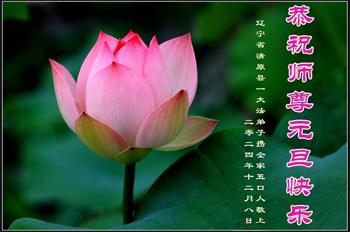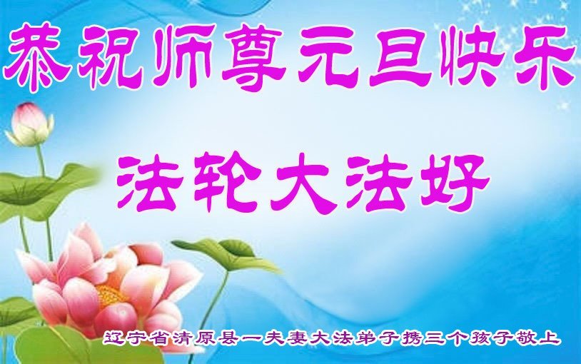 辽宁省营口市鲅鱼圈区大法弟子恭祝慈悲伟大的师父元旦快乐! 辽宁省抚顺市清原县一家八位大法弟子恭祝师尊元旦快乐!
