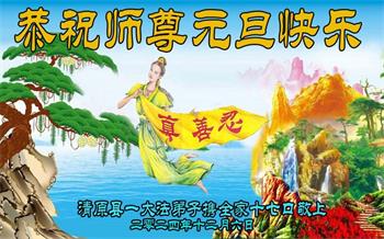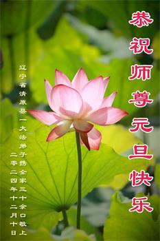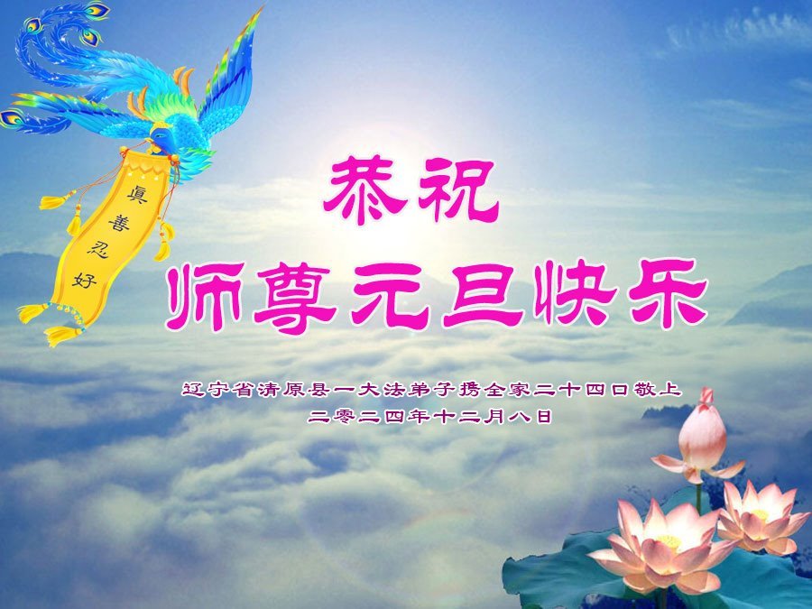 辽宁省抚顺市清原县一大法弟子携全家二十四口恭祝师尊元旦快乐!