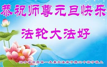 辽宁省抚顺市清原县一大法弟子携全家五口人恭祝师尊元旦快乐!