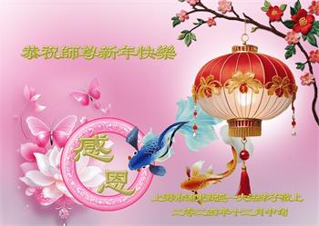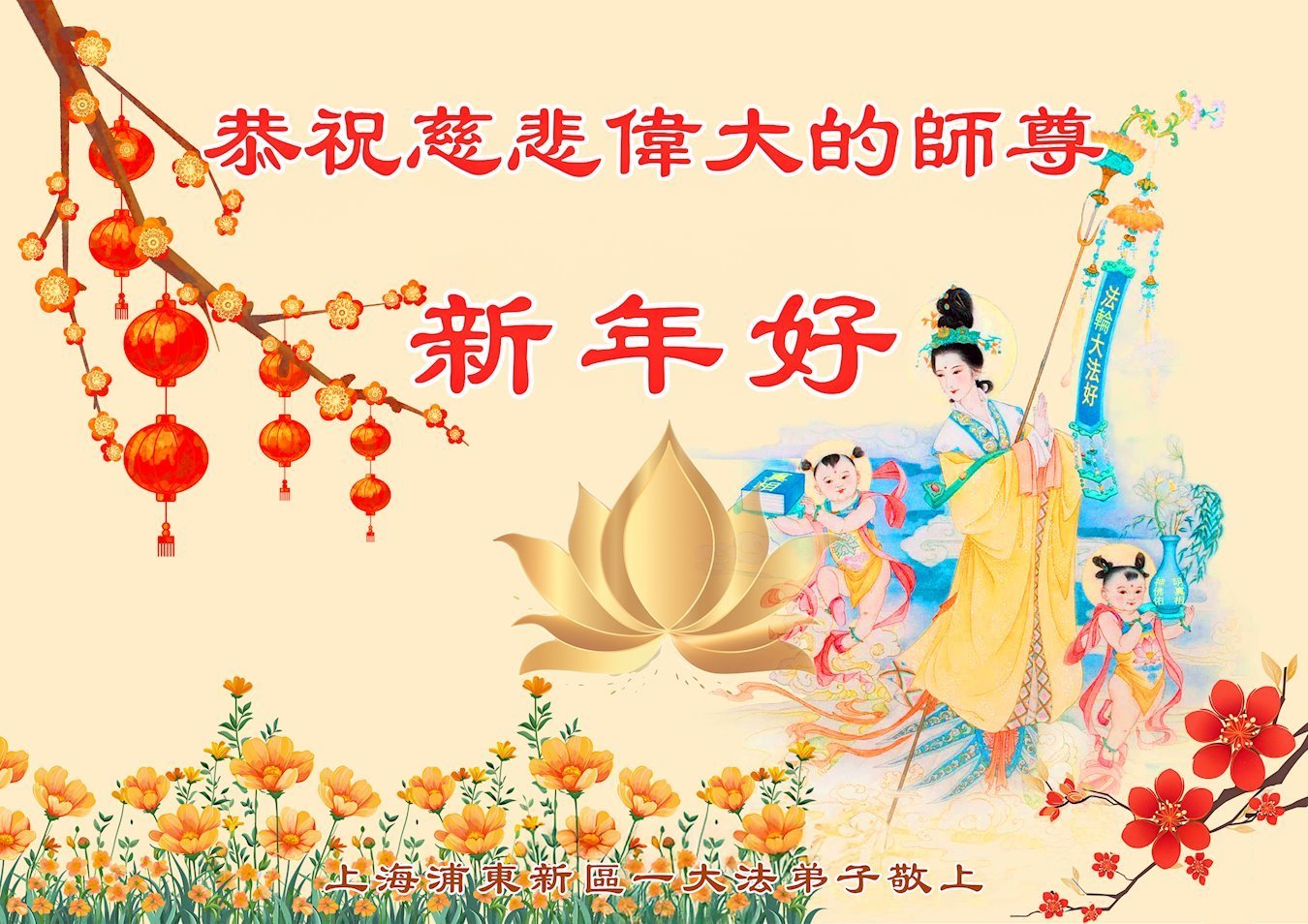 恭祝慈悲伟大的师尊新年快乐! 上海市浦东新区一大法弟子敬上 上海市黄浦区一学法小组大法弟子恭祝慈悲伟大的师尊新年快乐!